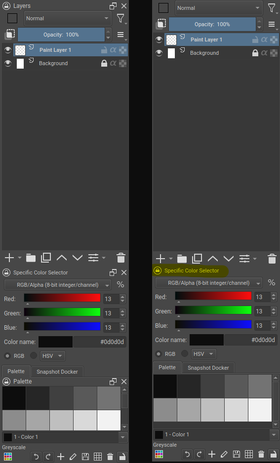Sometimes, even the palette docker name won’t hide properly, but it’s happening randomly. Other than that, the plugin stays well active after relaunching krita with the locker on ! Good job, you’re probably the most active plugin dev right now and providing killer features !
