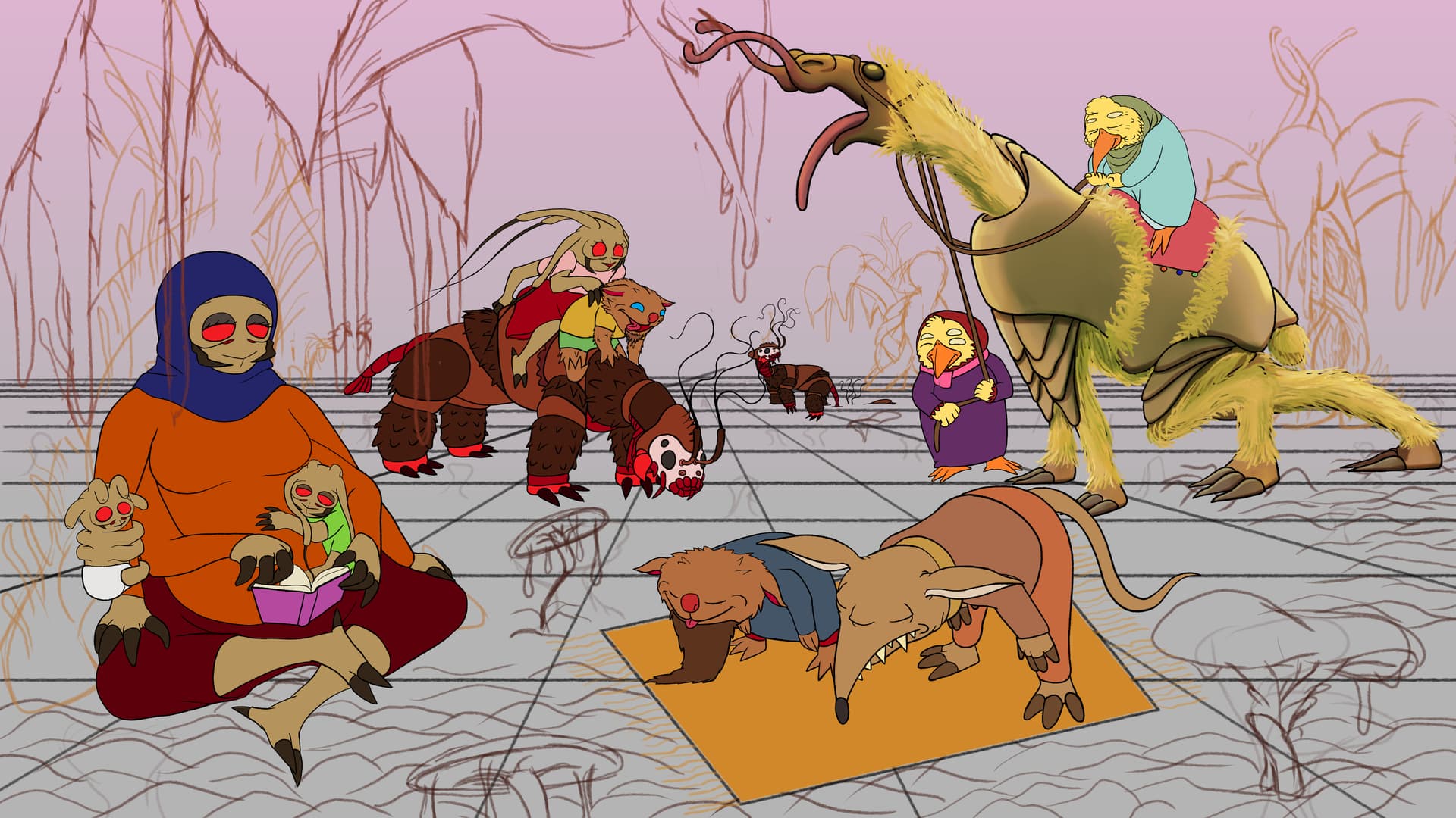 I watched a course for thumbnailing backgrounds, which I’ll get to soon. Tell me your thoughts. They are alien muslims on a swampy fungus planet for holiday. I’m not very good with perspective, honestly.