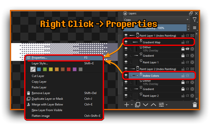 The layer depends you had depends on your settings in options (I initially made the index colors one, but then I noticed that the gradient map was more handy IMHO)