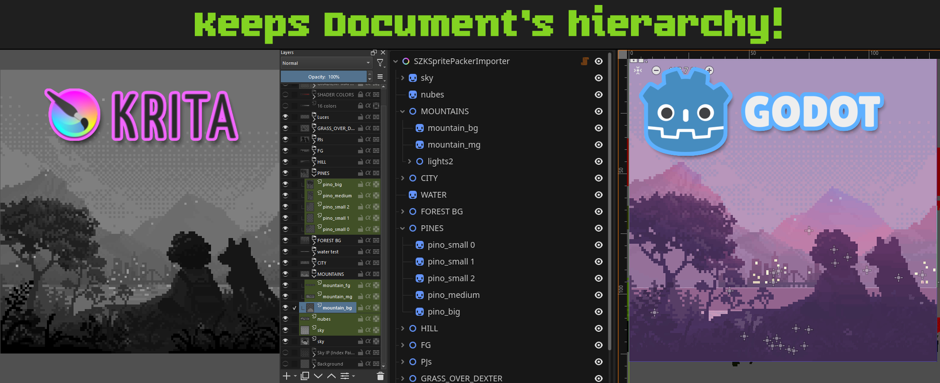 This update is specially useful for people interested in gamedev (and more specifically for those using Godot! ). It was made mostly while working on that illustration, and with the aim of improving my workflow with that and future illustrations and solving some problems I had.