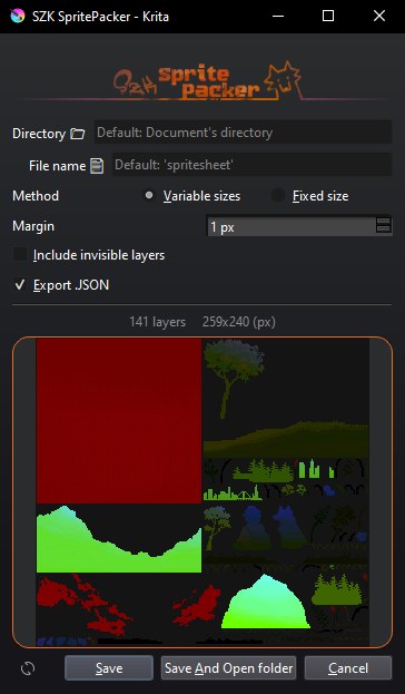 I added some options I missed in other spritepackers, 2 different ways for exporting the spritesheet (one is meant for animated sprites), and some more things (see “Bonus” section below).