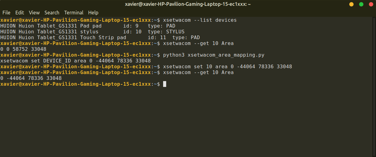 print("xsetwacom set DEVICE_ID area %d %d %d %d" % (area[0], area[1], area[2], area[3]))