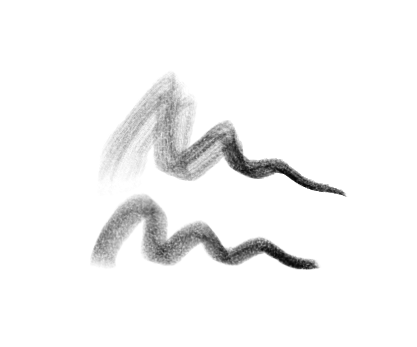 Here an example of a stroke made with a brush consisting of a bristly brush stamp combined with a texture. On top is âLinear Heightâ at 32% strength, with pressure mapped to strength. At bottom, âLinear Height (Photoshop)â at 3% strength.