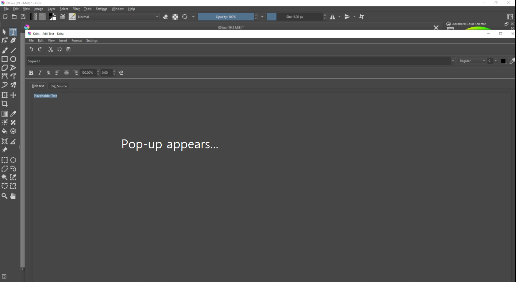 I have a problem that the text tool is not working when I attempt to add text to the layer by clicking and dragging. If I drag the mouse in somewhat bigger size, the tool pop up appears, but still I cannot add the text.