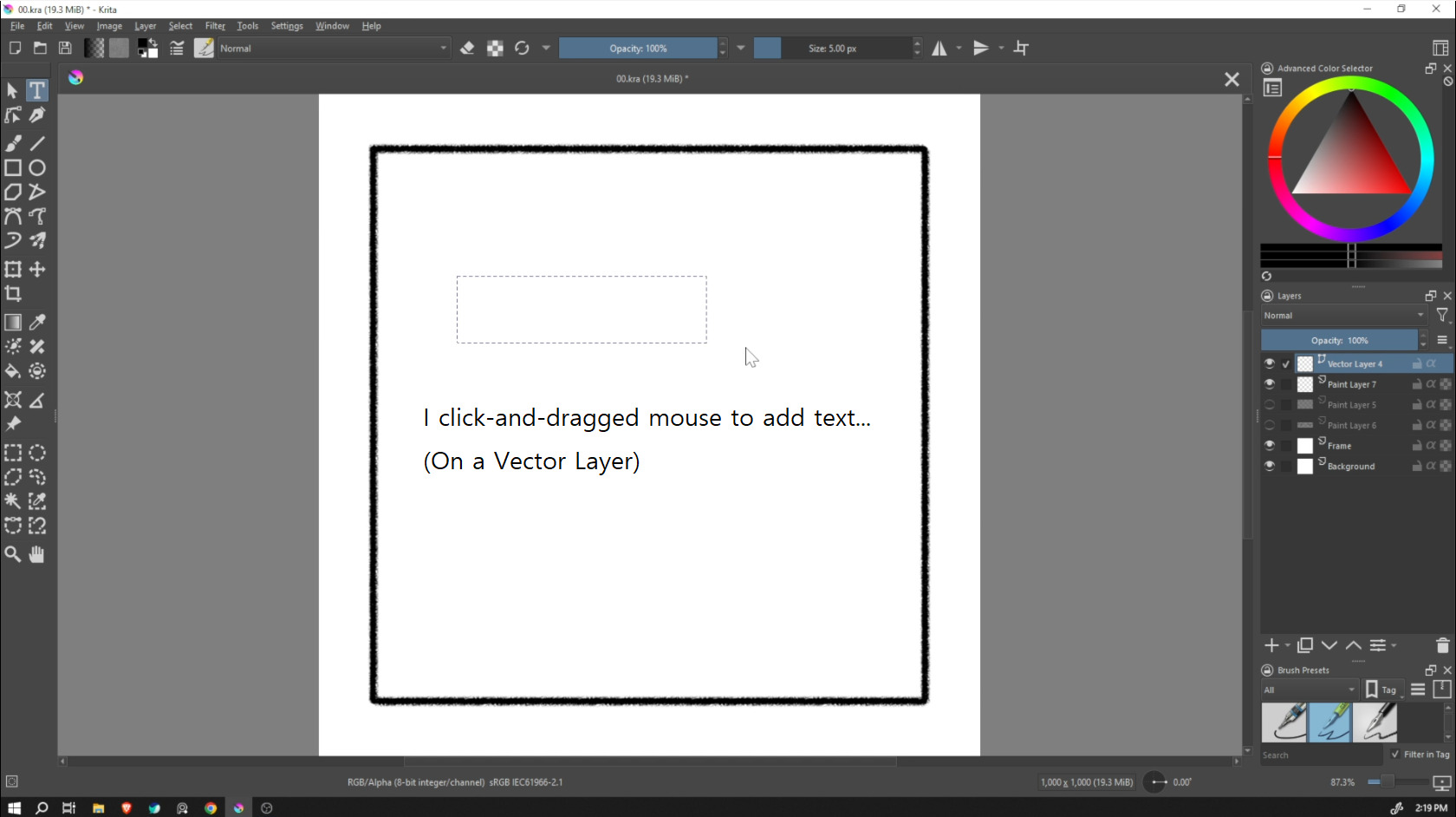 I also noticed you’re working directly in sRGB IEC61966-2.1 color profile, that’s quite an unusual pick. I doubt it has something to do with the problem but just out of curiosity, could you try adding text in a file that has the default color space which is sRGB-elle-V2-srgbtrc.icc
