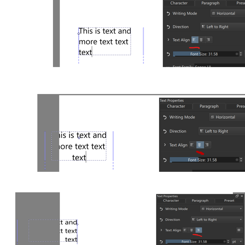 - Text tool edits paragraph properties when there’s no selection.