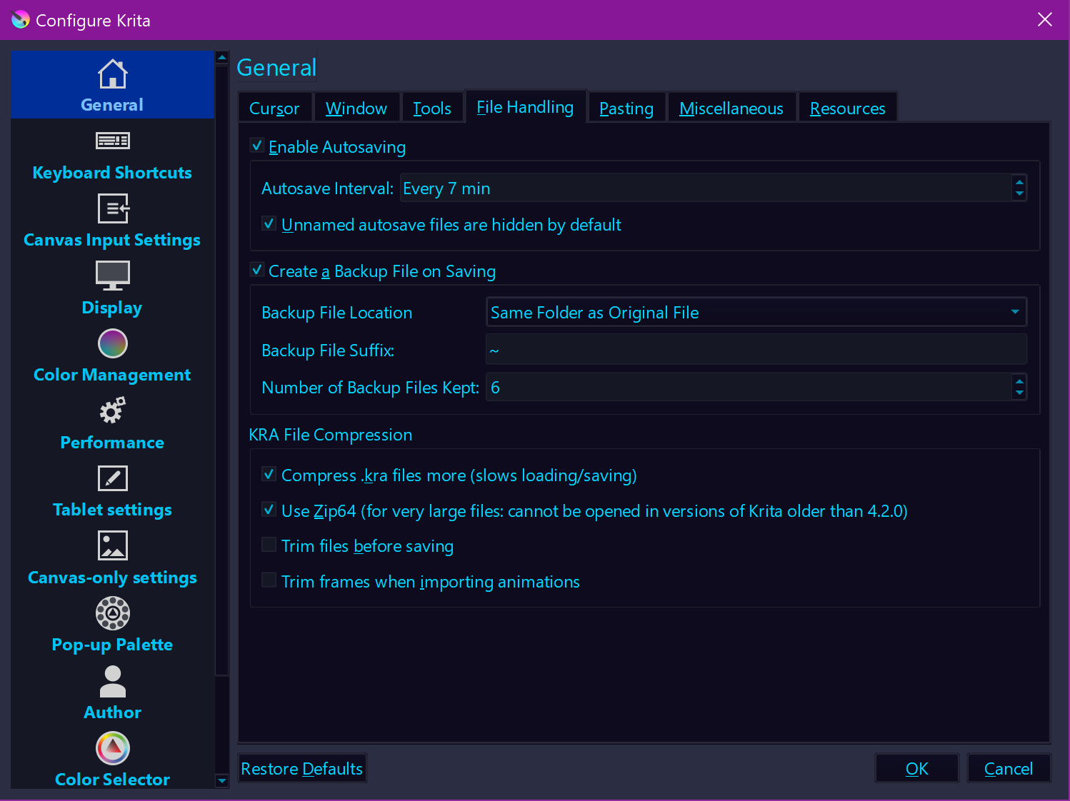 With Krita, you should at least create 4 incremental versions/backups per hour, that at least is my opinion, the drives are big enough these days to take tons of backups while you create something, and when you have finished a work, you can purge them to regain the space they needed for your next project, possible strategies can be found in above linked posting, if you want to go that route.