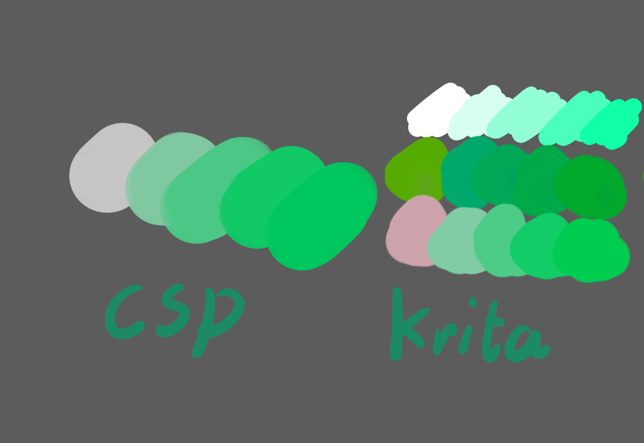 Umm… In Krita, I didn’t really want to use the PSD format (because going to other painting software would leak layers) , so I tuned it to Krita by following this “色トレスブラシ” brush setting