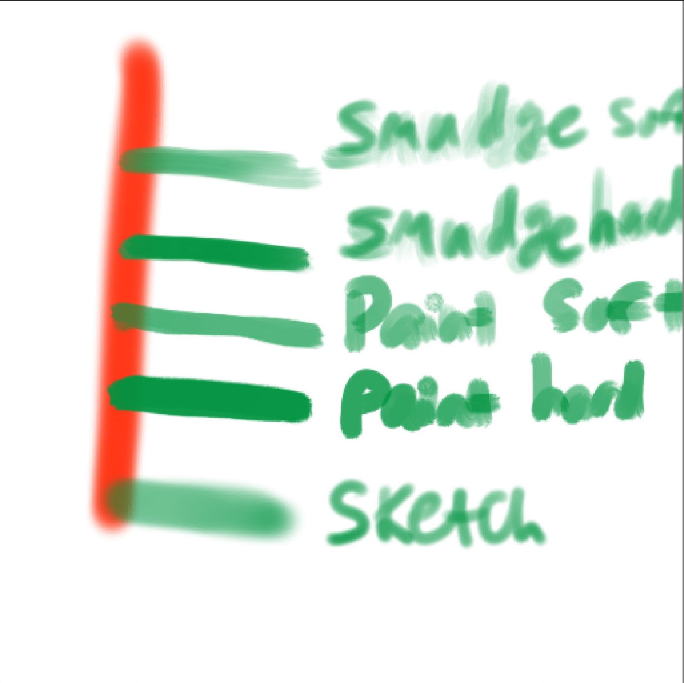 I’m a little confused about what the blending brush does differently from the painting brush. I’ve tried to compare them with usage (results below). The smudging brush is more sensitive to pressure, but I don’t notice that much of a difference with interaction with colour.