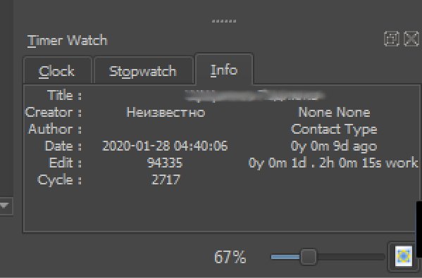 As you said Krita has a internal timer that updates upon saving. On the info tab, it exposes the xml values of the *.kra of exactley that, so when you save you get the Active Time of work of that given piece (in human readable time) if the file was not reset you will have the values since creation. And it will display the name of the original creator too if possible. Worth to note that really old files don’t have the xml with the same organization so sometimes it wont load up properly or at all (but if you know where the number is you can tweak the code for it, I left the current entries that i did not use on the code so you can read from where stuff is comming inside the code and not just some random numbers out of sequence).