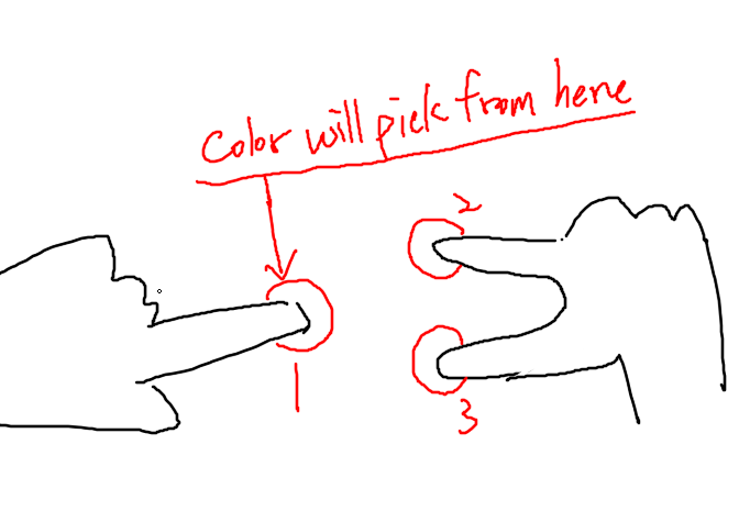 You can now easily dragging (or even leave canvas and tap) the FIRST finger to the color you want to pick, other two fingers don’t need to move ![]()