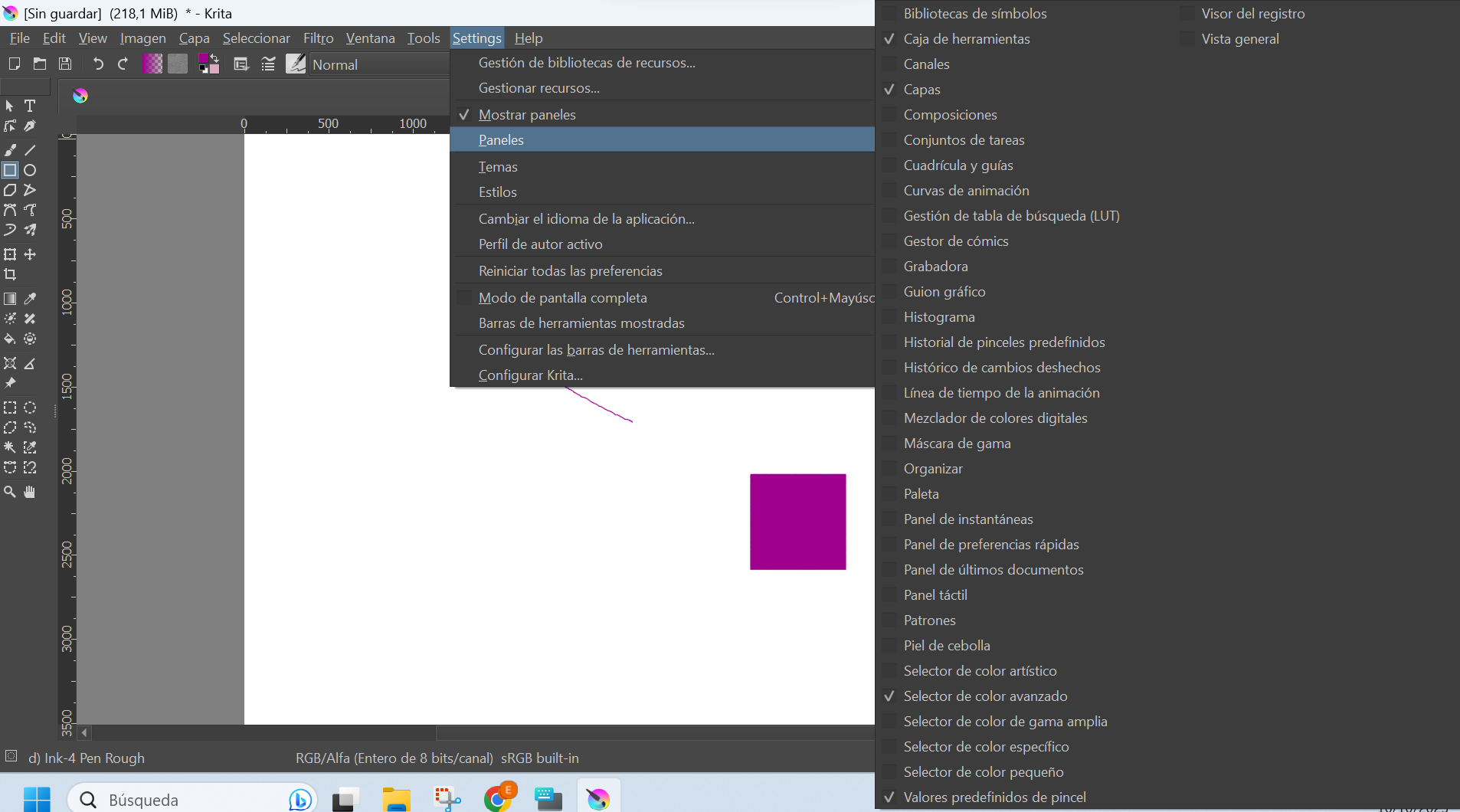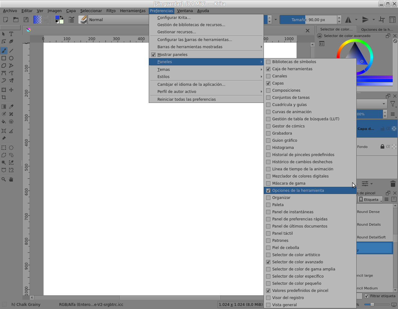 También tengo elementos de menú completamente en español en la barra de menú principal en la parte superior.