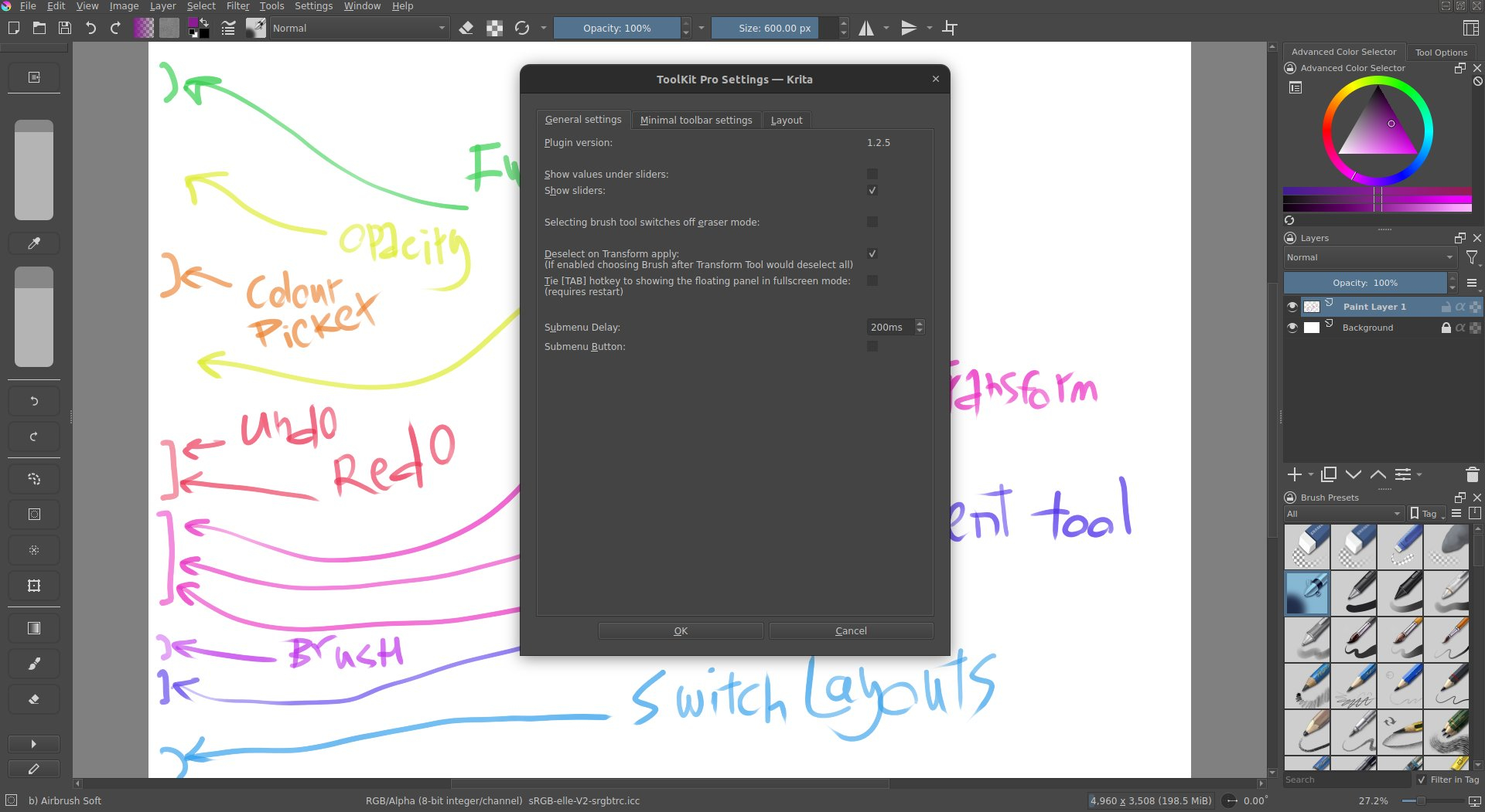 This plugin is a hacky mishmash of an original Toolkit docker and my take on Procreate controls for fullscreen painting.