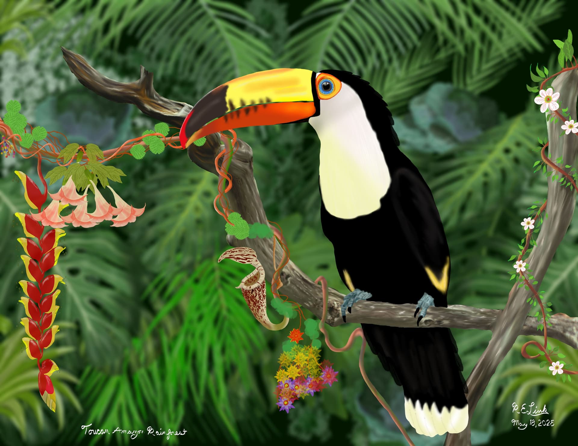 From my Amazon Rainforest series of paintings using Krita 5.2.9 and standard brushes. Posted with new background.