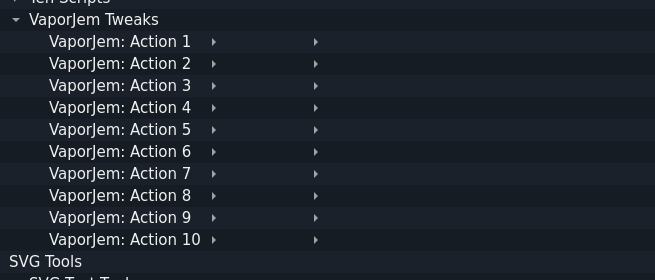 The reason we don’t use an .action file, is because it assumes that all of our actions are static. This is not the case, we add actions based on the data in the configuration files. I do want to make shortcuts avaliable though as well, but there’s a couple of hitches that we will have to resolve: