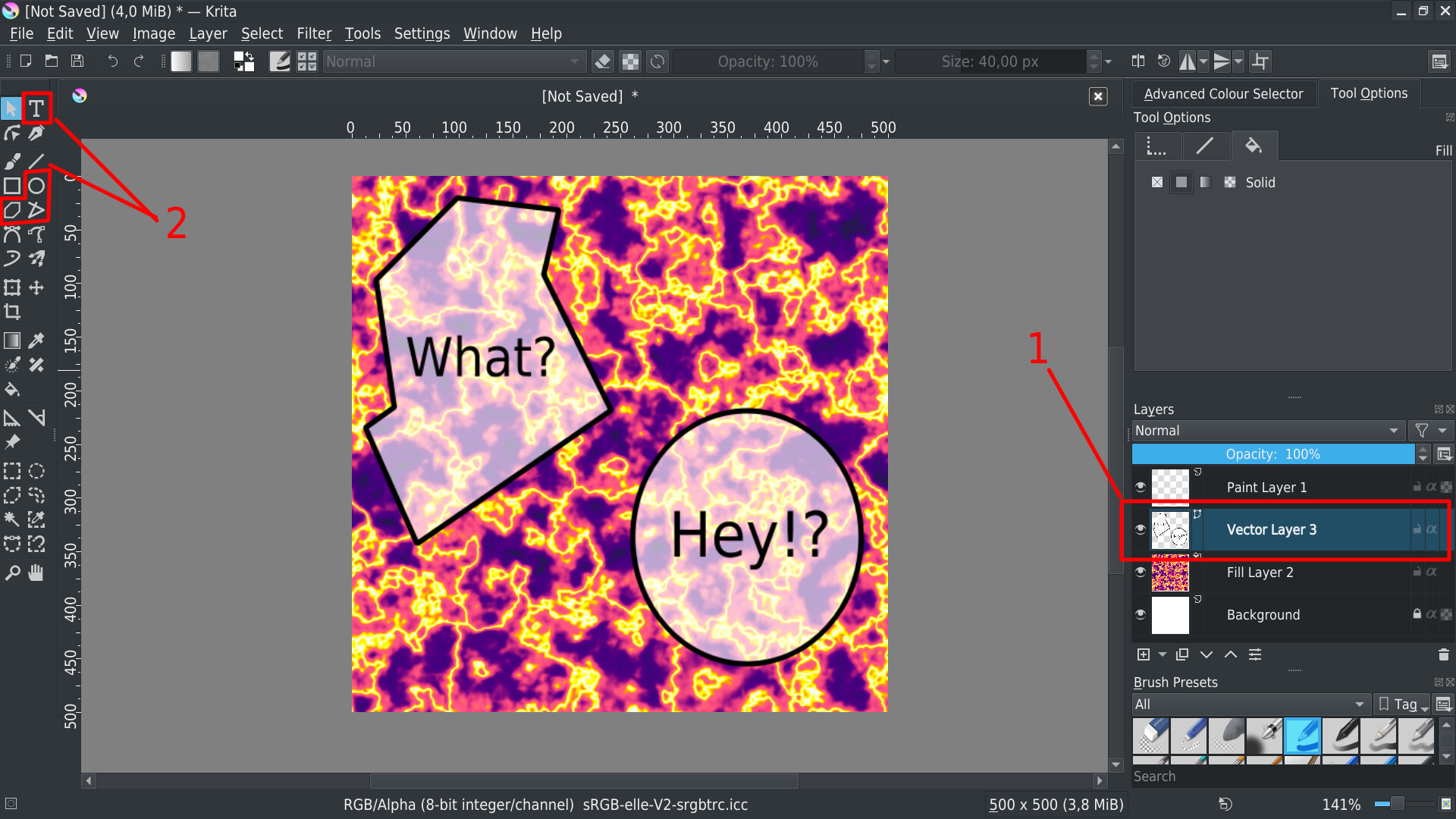 Use ellipse/polygon tools to draw bubbles You can also use rectangle, line, bezier curves, … or can also import SVG files if you already have some bubble models