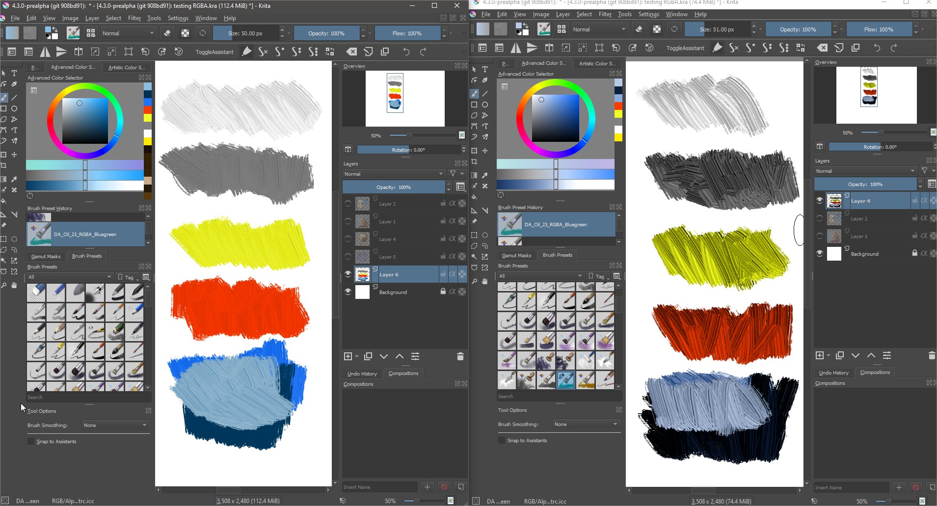 I’m attaching an image I made using this algorithm, that shows how this affects gradients and images and Atelier Oil brushes with different colors and such.