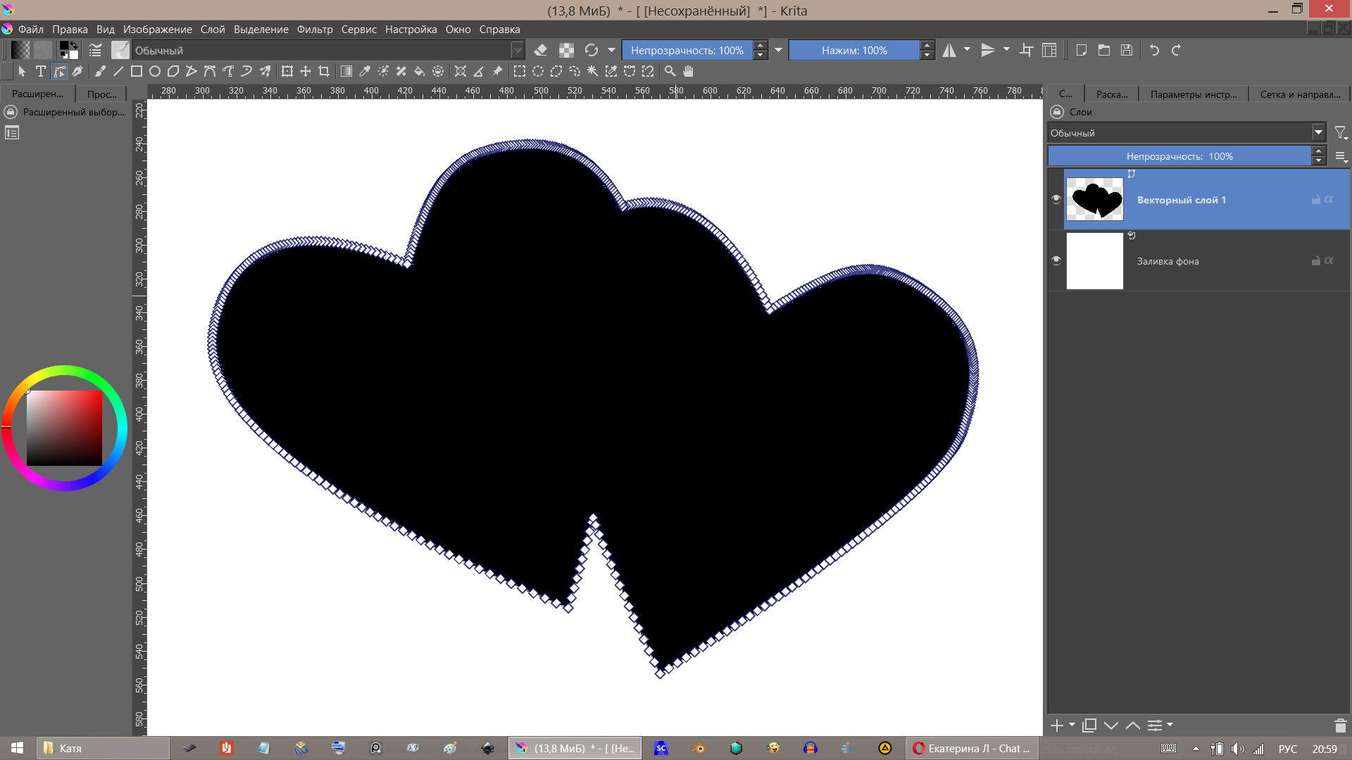 Krita’s vector facilities are not as well finished or extensive as Inkscape’s.