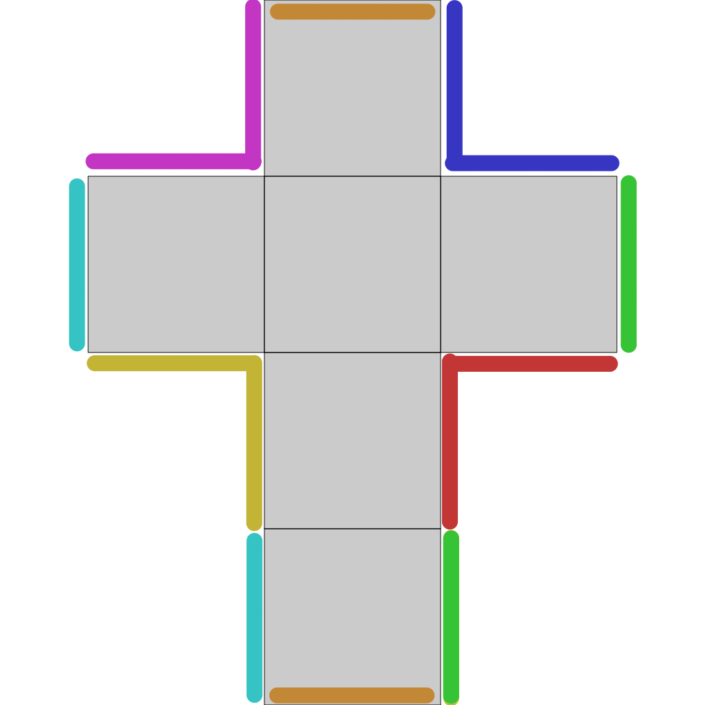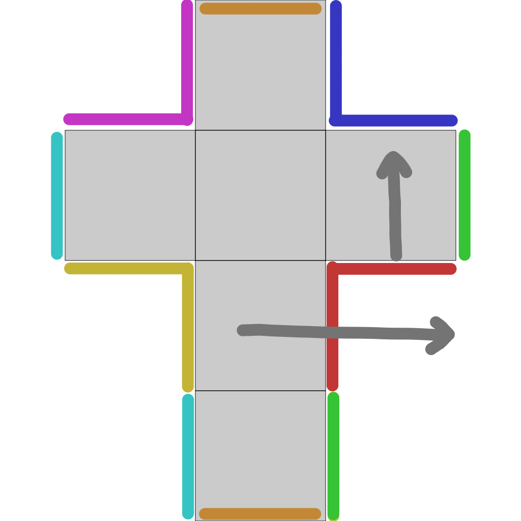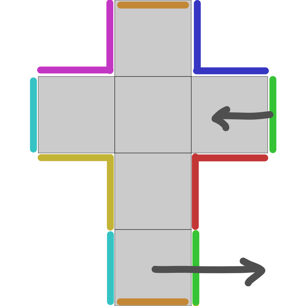 Considering the example cube what are the same sides? Here they are connected by colors.