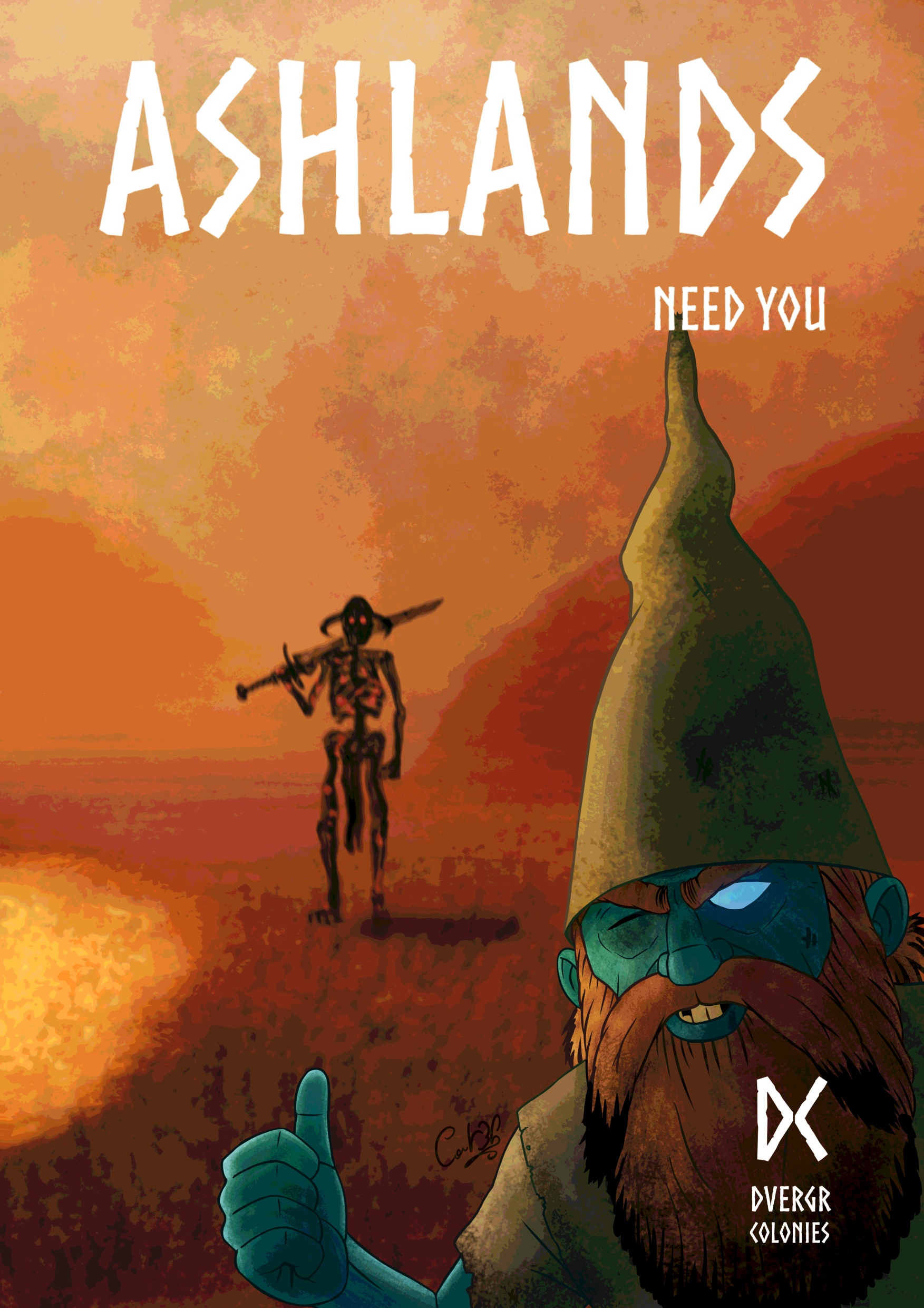 I made a diptych dedicated to one of my favourite games ever: Valheim! For those who don’t know, in Valheim you are a dead Viking sent to the 10th world of Yggdrasil by Odin to beat some rebellious bosses into submission. There is a per biome progression, and in the 5 first biomes (Meadows, Black Forest, Swamps, Mountain, Plains) you can feel pretty lonely, as apart from a few isolated merchants, you will only encounter enemies. But in the 2 next biomes, the Mistlands and the Ashlands, you might encounter some friendly Dwarves, the Dvergar, who came here to acquire rare resources. They are doing pretty well in the Mistlands, where they can be solid allies against the local fauna if you don’t anger them, but the Ashlands are way more ruthless and their outposts there are often quickly overrun. I imagined propaganda posters they would make to invite more of their kind from Nidavellir…