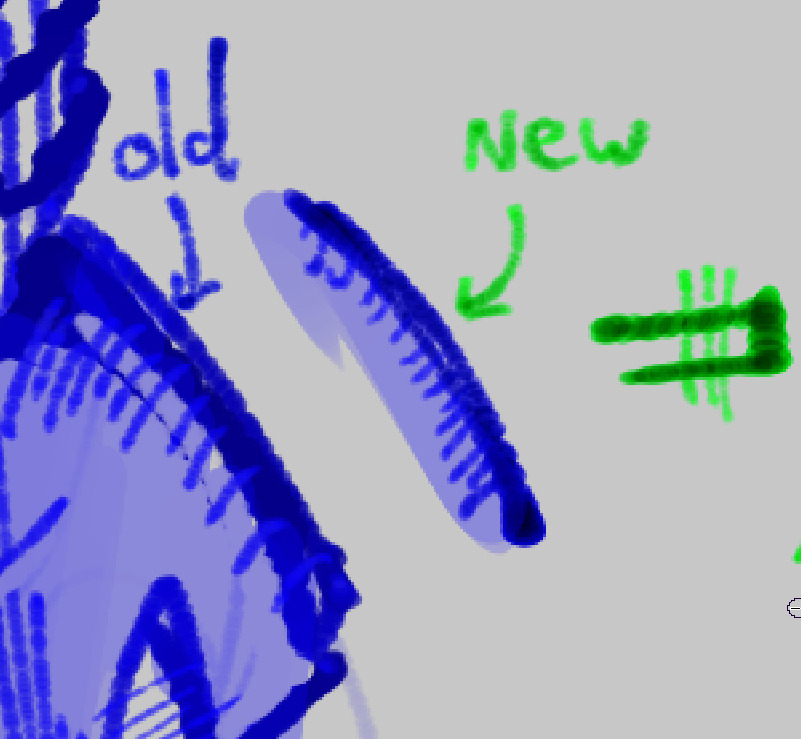 The default blend mode is now multiply, and i’ve adjusted the value curves to compensate for this. this naturally causes the brush to get darker toward the center of the stroke, and will now cause lighter lines to not appear above darker lines. This should make the brush behave much more like real ink.