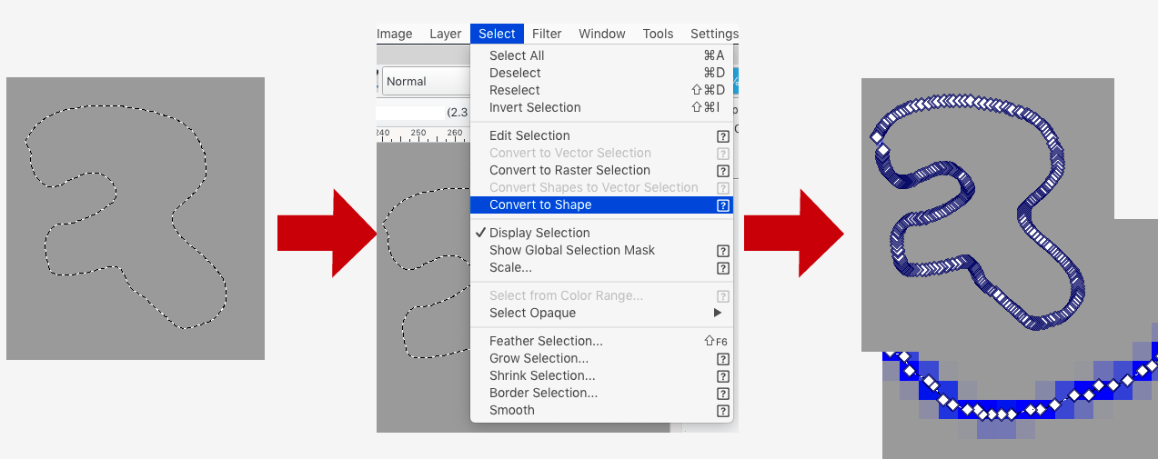 “Select > Convert to shape…”
