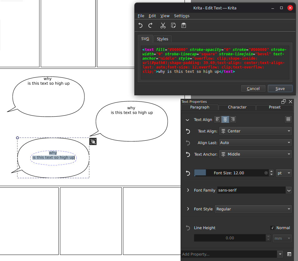Now that Krita 5.3 introduced being able to fit text inside of vector shapes, it’d be great to have an option to align the text vertically to the top/center/bottom of its available area.