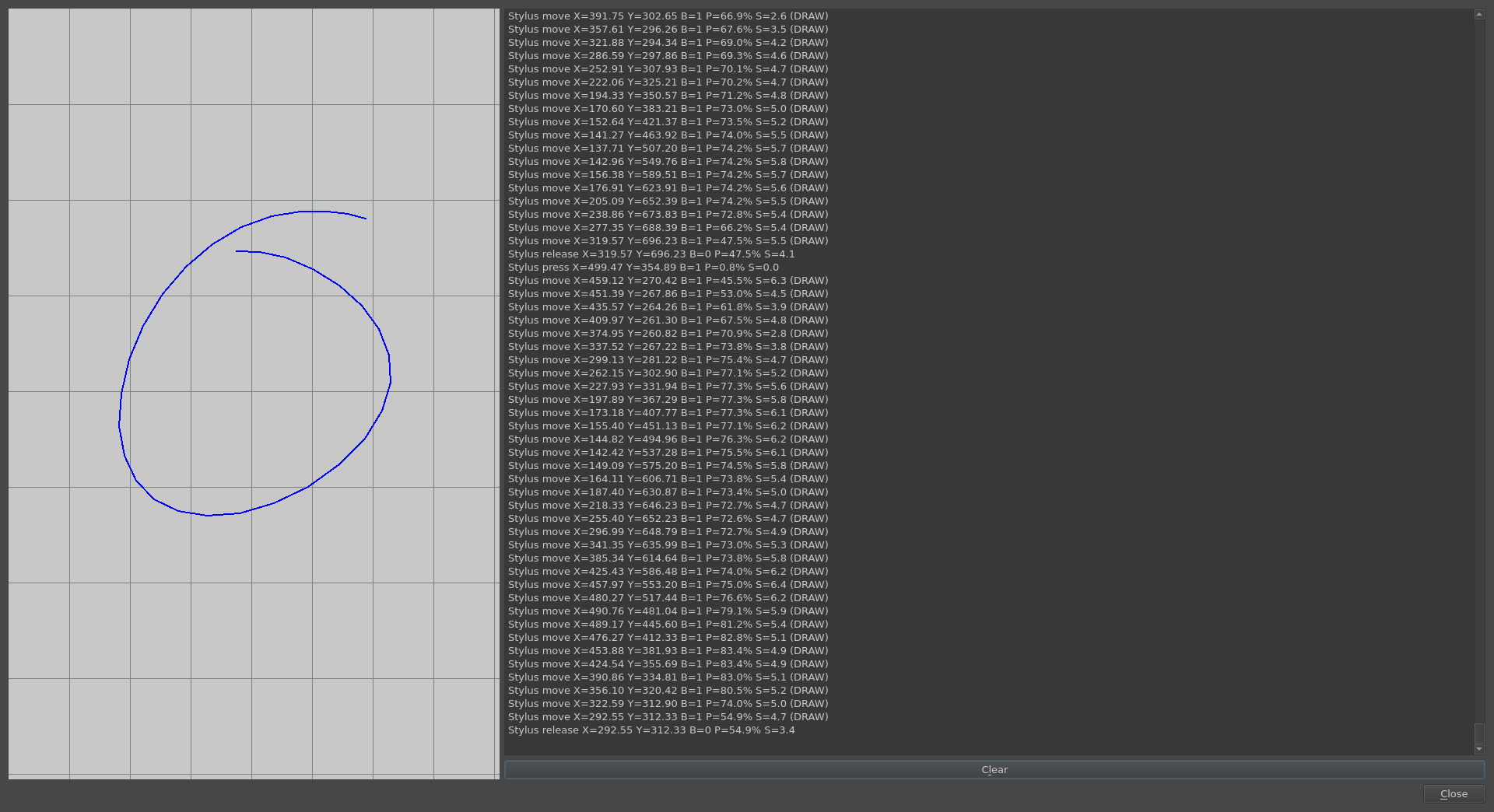 Back on Arch Wayland with libinput, I messed around a little with Krita’s Tablet Tester and was amazed to discover that drawing in its test area works perfectly, both the beginning and end of strokes look consistently fine! So it seems that this is possible after all and Krita even receives the right signals from the tablet/driver. But how is it working fine in there and not on actual Krita canvases or other applications?