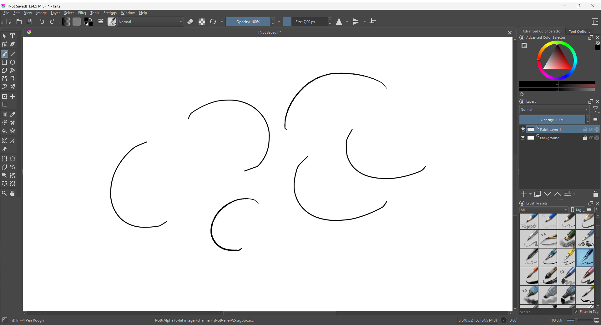 This seems to be a common issue, it’s even mentioned at Introduction to User Support — Krita Manual 5.2.0 documentation, but I’ve only found mentions of this issue relating to Windows, nothing at all for Linux. The KDE drawing tablet settings on Wayland only have a few mapping settings, so it doesn’t look like there’s anything in there that could fix it. I read Graphics tablet - ArchWiki and if I understand correctly, the default out-of-the-box way to handle drawing tablets on Wayland is libinput, so I assume that’s what I’m using when I haven’t specifically installed a driver. I tried the other drivers listed in that article, as well as a live Ubuntu 22.04.3 X11 system and the official Wacom driver on a fresh Windows 11, to see if they have the same problem. As it turned out, all of them have slightly different versions of this issue for me.