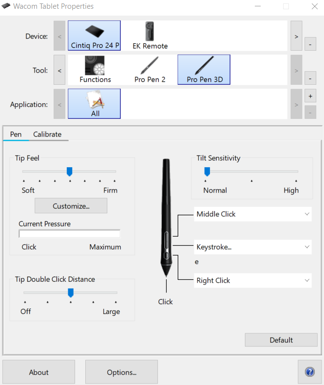Brand and version of the device: Wacom Cintiq 16 + Wacom Pro Pen 3D