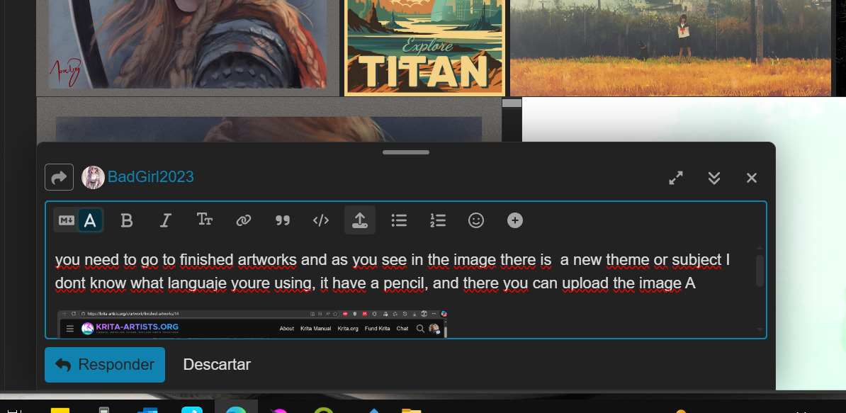 you need to go to finished artworks and as you see in the image there is a new theme or subject above the joker I dont know what languaje youre using, it have a pencil, and there you can upload the image with the icon you see in the scond image hahaha i try to explain but not good at english