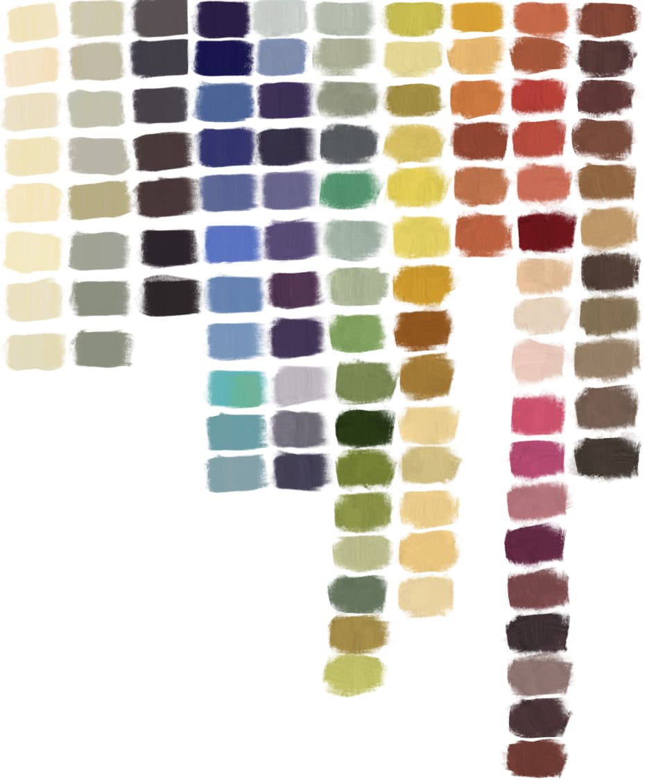 I’ve gone to the Nicholas Rougeux source and found a page called data which has all the information for the 110 colors, the actual originals aren’t good because they are hand painted and have texture variation so it would be hard to color pick them, but the DATA page contains the hex information and the swatch included is averaged into a solid color so I can also color pick it. I’ve created a PDF of that and will be able to to recreate a full palette of the 110 colors for Krita (should I feel a need to).