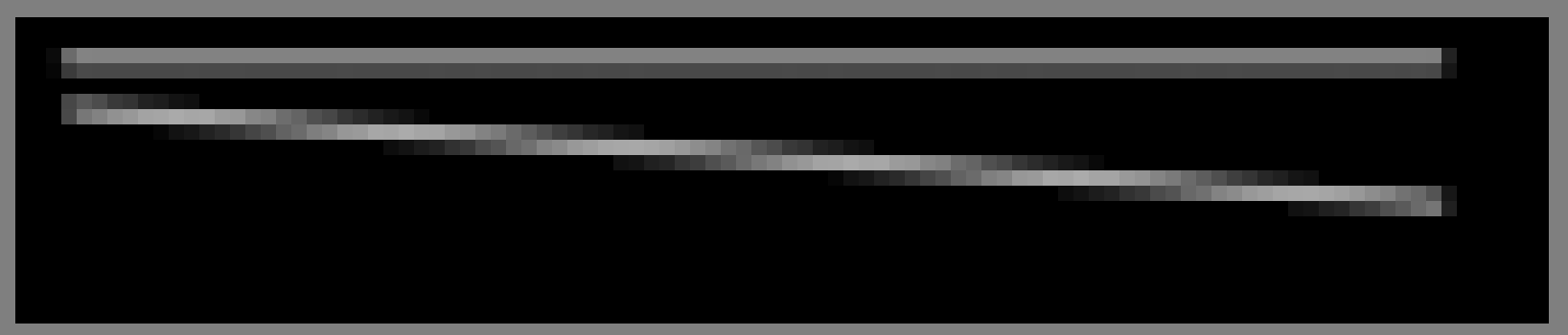 a line that is not perfectly horizontal but the angle is not too big has parts that are completely opaque and parts that are completely transparent: