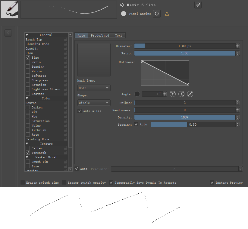 So I don’t see explanation in settings to why it wouldn’t work with 0.8px too. The Fade setting for Gaussian is around 0.89, which means “nearly full circle”, and it looks very similar to the Default one (the Soft one is a bit softer by default).