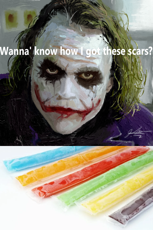 2 “Portrait of an intimidating Joker with two massive scars on each side of his mouth that he covers with smudgy makeup to look like a big creepy clown smile” If that’s too long, you can trim it down Sooz. I just closed my eyes and imagined i was unable to see, and that’s what i came up with.