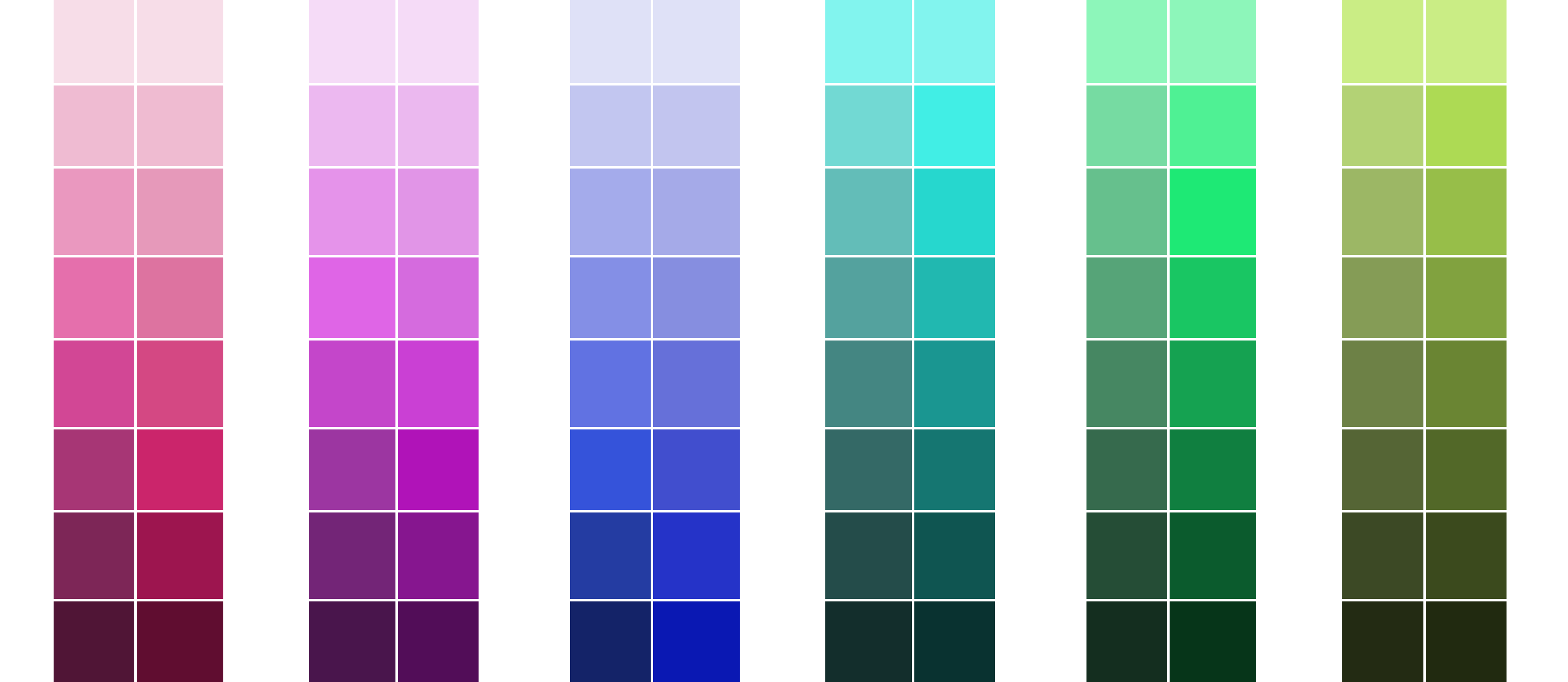 However, I have done a test before. I use the same color (the color list on the left is the result of HSY, and the color list on the right is the result of HCY). I only change the Y of HSY or HCY, and keep the Y of HSY consistent with that of HCY. Personally, I feel that HSY has a feeling of gradual darkening of the same color than HCY. I guess the reason why HSY dilutes the saturation around 0.5Y is that the human eye is more sensitive to the saturation change around 0.5Y. Even if the saturation change is very weak, the human eye will feel the change is very strong.