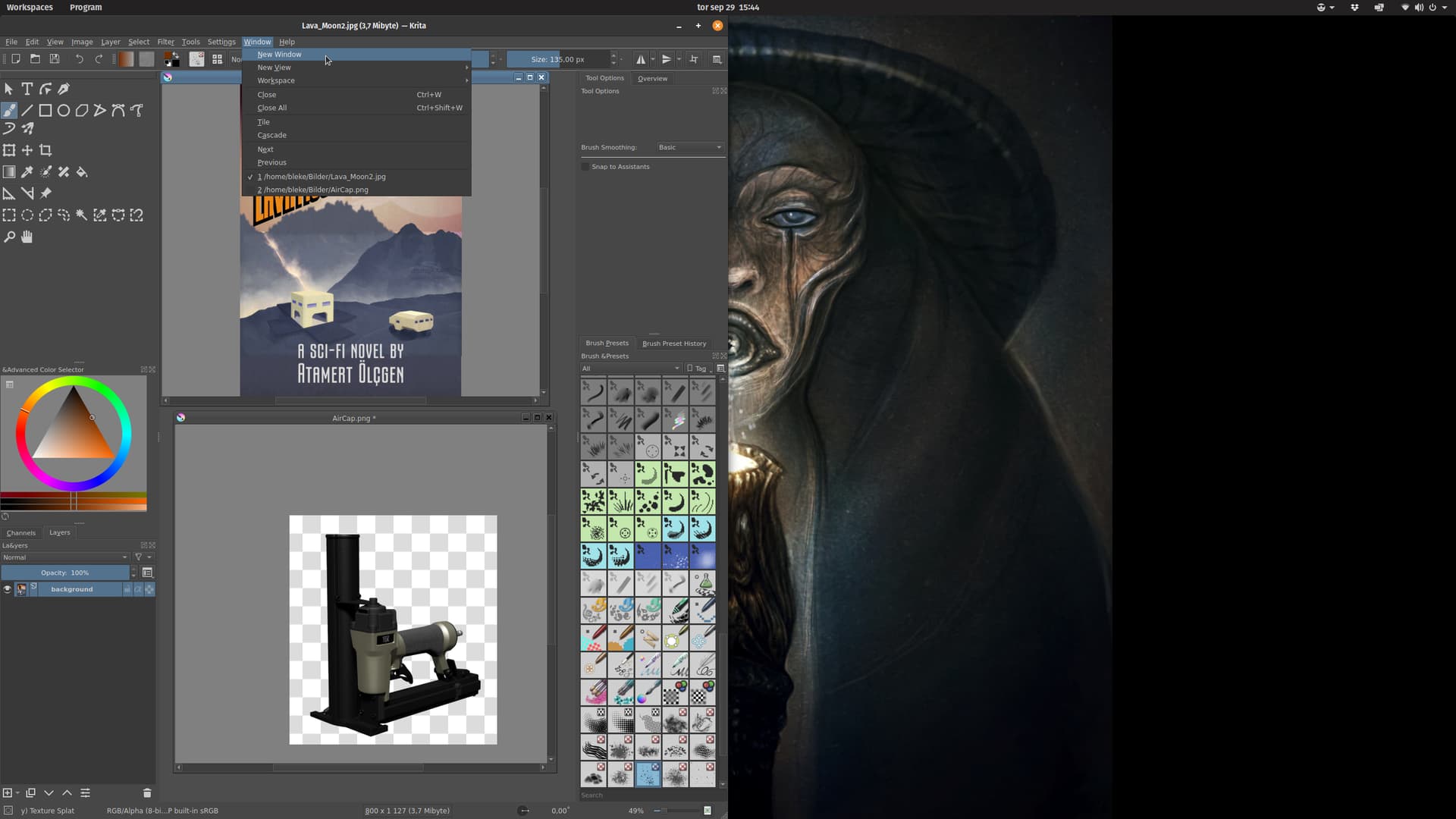 it is also displayed in the KRITA MAIN WINDOW