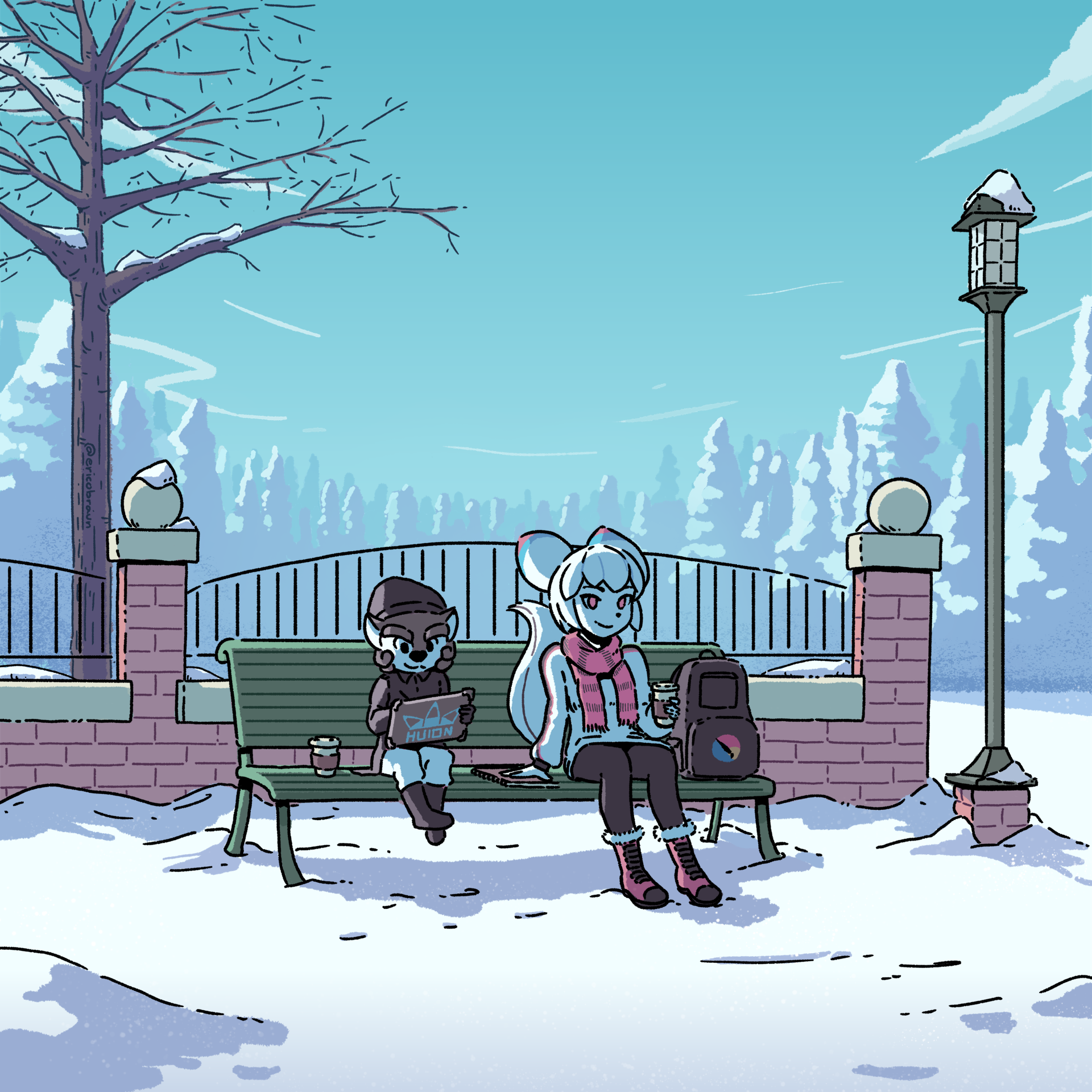 Winter is here! On their drawing adventure, Leon and Kiki decided to dedicate their day to plein air painting. They walk through the streets, buy some coffee and head to the park. Stopping by a bench, Leon can’t wait and is sketching the park covered in snow already, while Kiki prefers to warm up with a sip of coffee first.