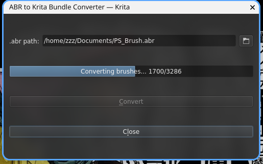 Thank you so much for this project! I forked it and modified it to convert Photoshop .abr files directly into Krita bundles, with a similar GUI that runs inside Krita. Hope it helps someone!