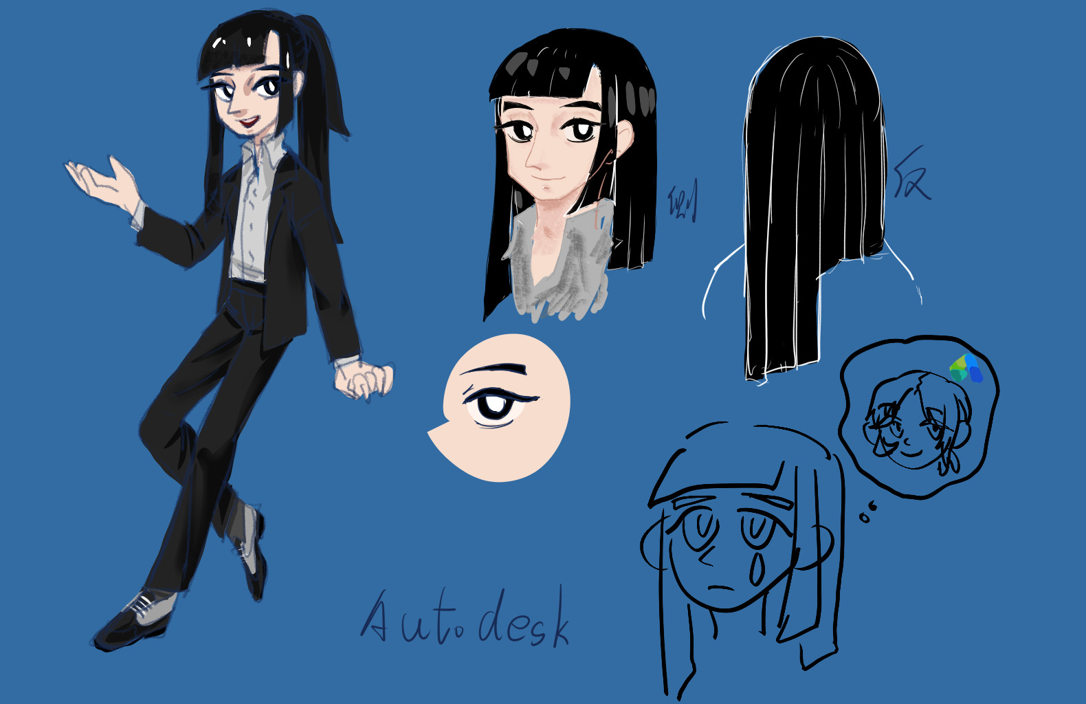 Once the hairstyle is ready, I will start drawing it with the logo of the first version