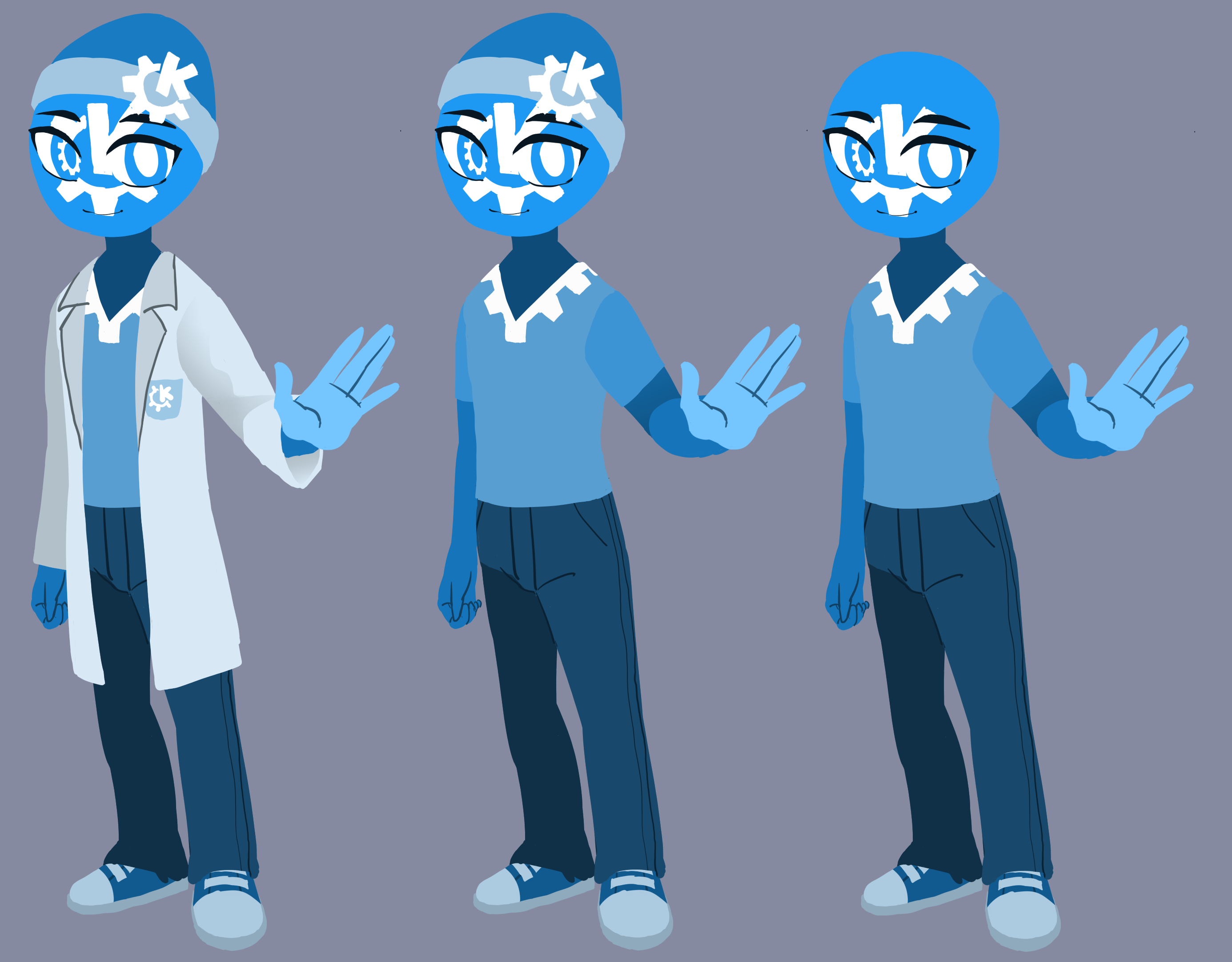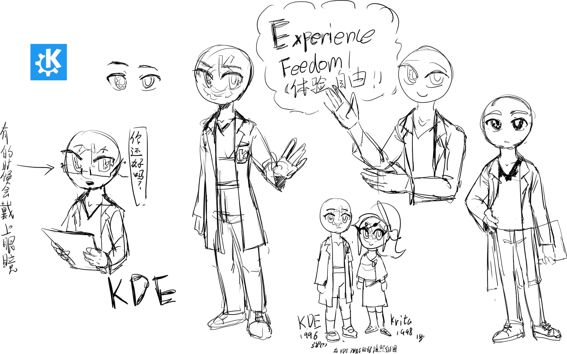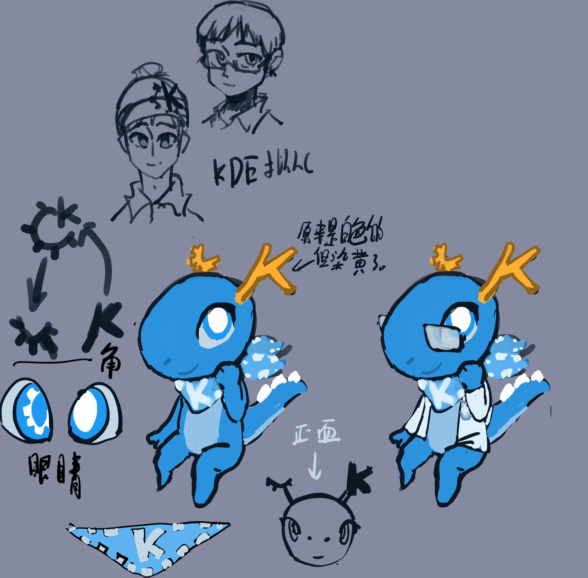 画Konqi形象的原因:只是我认为KDE不会经常以人类形态出现,一般是以他的吉祥物出场,但在一些重要场合会以人类的形态出场