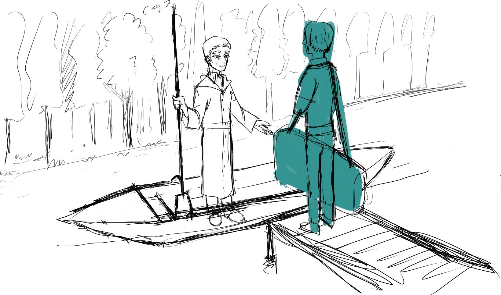 The man on the boat was Adobe, he was wearing a black, hooded robe, something like a ferryman