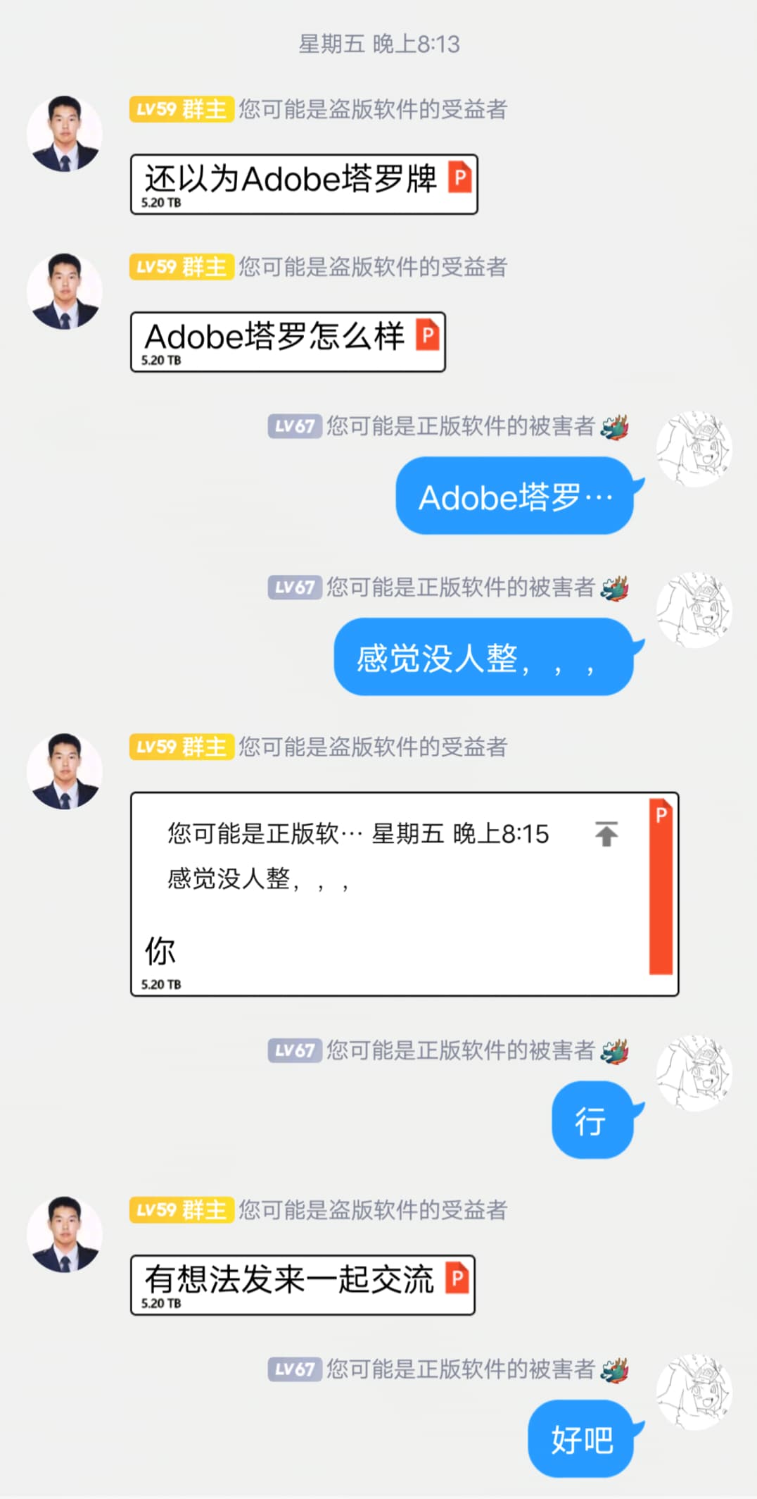 (大概总结:我有一天在群里发塔罗牌,然后那个群主叫我做Adobe塔罗牌