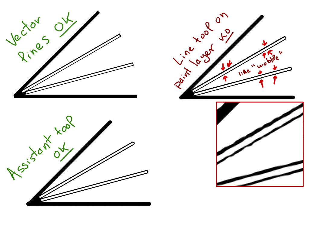 - Use of assistant tool (ruler, parallel ruler, infinite ruler) on paint layer, drawn lines are perfect