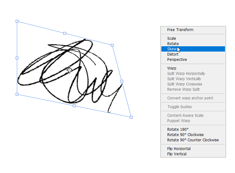 Let me pursue again by showing how Photoshop’s free transform tool work.