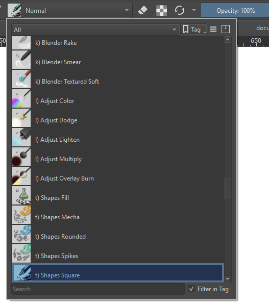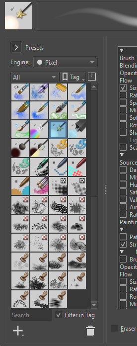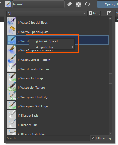 When creating a new brush from the currently selected brush preset, keep tags attached. I have numerous tag groups for my brushes. If I am in a tag group and want to create a new version or modification of a brush, the tags are not carried over. This means the brush is not actually visible in the selected tag category. Having to then leave the tag group, find the new preset and tag it so it is in the correct group is quite annoying.