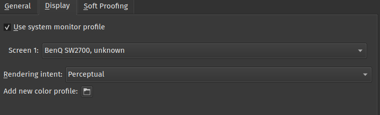 Here on linux I my display and set the resulting profile on the os level, then in Krita I merely check the “use monitor profile” checkbox.