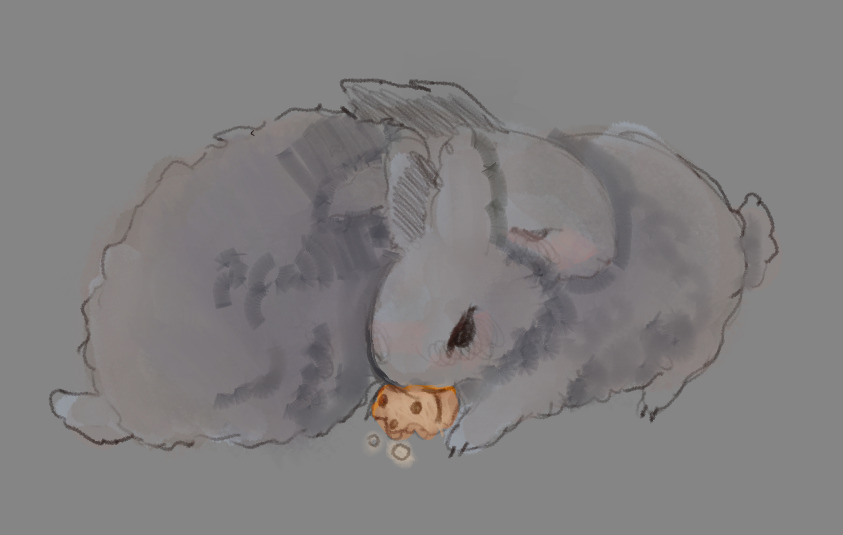 Your description was too cute not to draw it, as a proud, normal bunny owner.