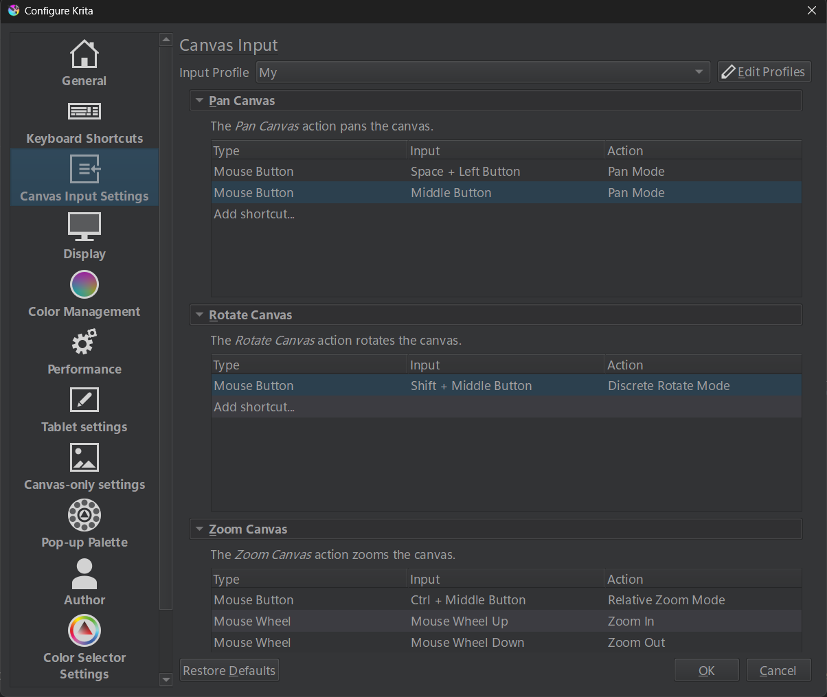I’m a 6 year Medibang user and I’m wondering if its possible to use the Overview Window in a similar way to Medibangs, where all I gotta do is flick my mouse over the window, hold rightclick, and then move the mouse Up to zoom in, or Down to zoom out. It’s really simple and I love it cause I don’t have to Fiddle with any tiny bars or the set distances of the scroll wheel, and it puts my mouse close so I can make small adjustments as needed.